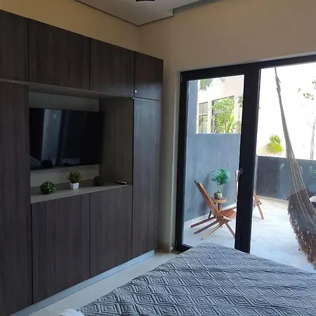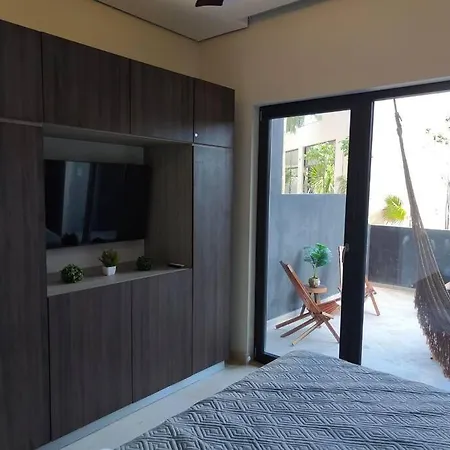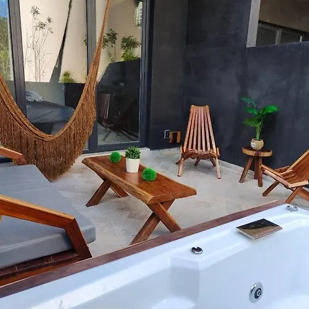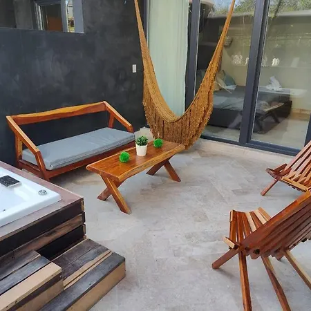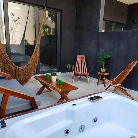 To enjoy your vacation in Tulum, stay at the 1-room A Pasos De La Playa, Con Terraza Y Jacuzzi Apartment Tulum, which is just 1.8 km from the Playa Maya and nearly 25 minutes' walk from santa fe beach club. The apartment features a private swimming pool and a terrace overlooking the garden.