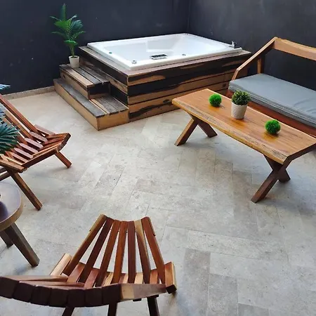 A Pasos De La Playa, Con Terraza Y Jacuzzi Lägenhet lägenhet ligger i distriktet Zona Hotelera, och har pool och trädgård. Du kan hitta Tulums mayanska ruiner i Tulum, inom 2 km bort från boendet.
